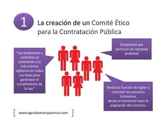 El alcalde electo de Bogotá, Gustavo Petro, propone a través de su programa 'Bogotá Humana Ya', la creación de varias iniciativas para combatir la corrupción, incluyendo un comité ético para la contratación pública y un consejo de lucha contra la corrupción. Además, se fortalecerá la gestión en línea y se crearán redes de inteligencia para combatir delitos. Se garantizará la independencia del alcalde en elecciones de personero y contralor, priorizando la capacidad de los alcaldes locales.