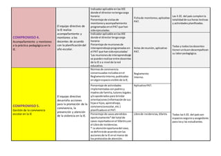 Este documento presenta 5 compromisos de gestión escolar para el año 2017. Los compromisos 1 y 2 se refieren a mejorar los resultados de aprendizaje de los estudiantes y mantener la matrícula. Los compromisos 3, 4 y 5 se enfocan en procesos como cumplir la calendarización planificada, monitorear la práctica pedagógica y promover la convivencia escolar, los cuales contribuyen al logro de los objetivos de aprendizaje y permanencia. Cada compromiso incluye indicadores y fuentes de información