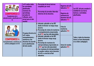 Este documento presenta 5 compromisos de gestión escolar para el año 2017 en una escuela peruana. Los compromisos se enfocan en mejorar los aprendizajes de los estudiantes, retener a los estudiantes en la escuela, cumplir con el calendario escolar planificado, monitorear la práctica pedagógica de los maestros, y promover la convivencia escolar. Cada compromiso incluye objetivos, indicadores y fuentes de información para medir el progreso.