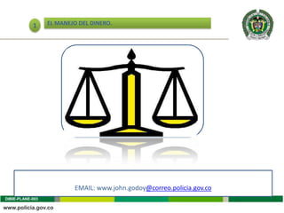 El documento describe los compromisos éticos del Colegio Nuestra Señora de Fátima en Armenia. Estos compromisos incluyen alinear sus estrategias con las políticas de convivencia y seguridad ciudadana de la Policía Nacional, apoyar a la comunidad a través del respeto y la credibilidad, y garantizar la participación ciudadana como veedores institucionales. También se enfoca en promover el trabajo en equipo y ser ciudadanos ejemplares de acuerdo con el proceso de integridad policial.