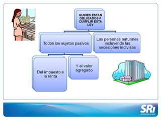 Este documento resume los principales tipos de comprobantes de venta que deben emitirse según la ley ecuatoriana, incluyendo facturas, notas de venta, boletas, guias de remisión, notas de debito y credito. También explica el Régimen Impositivo Simplificado para Pequeños Contribuyentes (RISE) y sus beneficios y obligaciones.