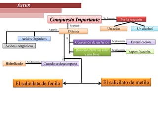 Los ésteres son compuestos importantes que se forman por la reacción de un ácido orgánico con un alcohol. La conversión de un ácido a un éster mediante esta reacción se denomina esterificación, mientras que la hidrólisis o descomposición de un éster por reacción con una base se denomina saponificación.