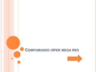 Compumundo híper mega red es una empresa dedicada al diseño, elaboración e instalación de software educativo y contable que busca ofrecer un servicio óptimo a la comunidad a través de la tecnología de punta y buenas relaciones laborales para lograr reconocimiento nacional e internacional. La empresa se enfoca en maximizar el valor para los socios y usuarios, fortalecer los mercados y prestar excelentes servicios a la comunidad a través de su personal especializado.