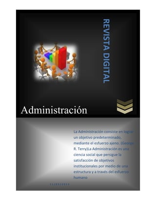 Uno. El documento habla sobre la administración como ciencia social que busca lograr objetivos institucionales a través de una estructura y el esfuerzo humano coordinado.