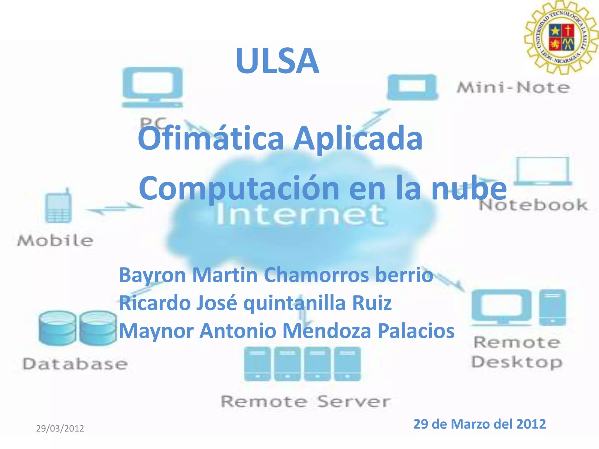 El documento describe conceptos clave de la computación en la nube, incluyendo qué es, sus beneficios como acceso a aplicaciones desde cualquier lugar con conexión a Internet y uso más eficiente de recursos, y desventajas como dependencia de proveedores y posible vulnerabilidad de datos. También discute conceptos como software como servicio, plataforma como servicio e infraestructura como servicio.