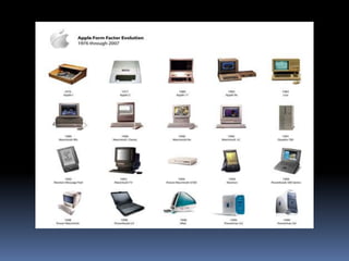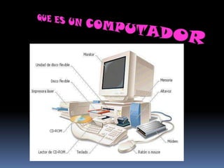Este documento resume la historia temprana de los computadores desde 1670 cuando Gottfried Leibniz perfeccionó la máquina analítica e inventó una que también podía multiplicar. Luego describe diferentes tipos de computadores a través de los años como computadoras analógicas, híbridas, supercomputadoras y más. Finalmente enumera varios dispositivos de entrada, salida, almacenamiento y memoria empleados en computadores.