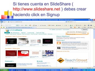 Este documento proporciona instrucciones en 10 pasos para subir una presentación de PowerPoint a SlideShare. Los pasos incluyen crear una cuenta en SlideShare, iniciar sesión, hacer clic en "Cargar", seleccionar la presentación en la computadora, agregar una descripción, hacer clic en "Publicar", obtener el código para insertar la presentación en otro sitio web, y pegar el código en un artículo de WordPress.
