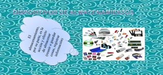 Este documento describe diferentes tipos de dispositivos de entrada y salida para computadoras. Explica que los dispositivos de entrada convierten la información en señales eléctricas que se almacenan en la memoria central e incluyen el mouse, teclado, micrófono y escáner. También describe dispositivos de almacenamiento como CDs, DVDs, memorias USB y tarjetas de memoria. Finalmente, detalla dispositivos de salida como monitores, impresoras, parlantes, plotters y videoproyectores que reciben información de la comput