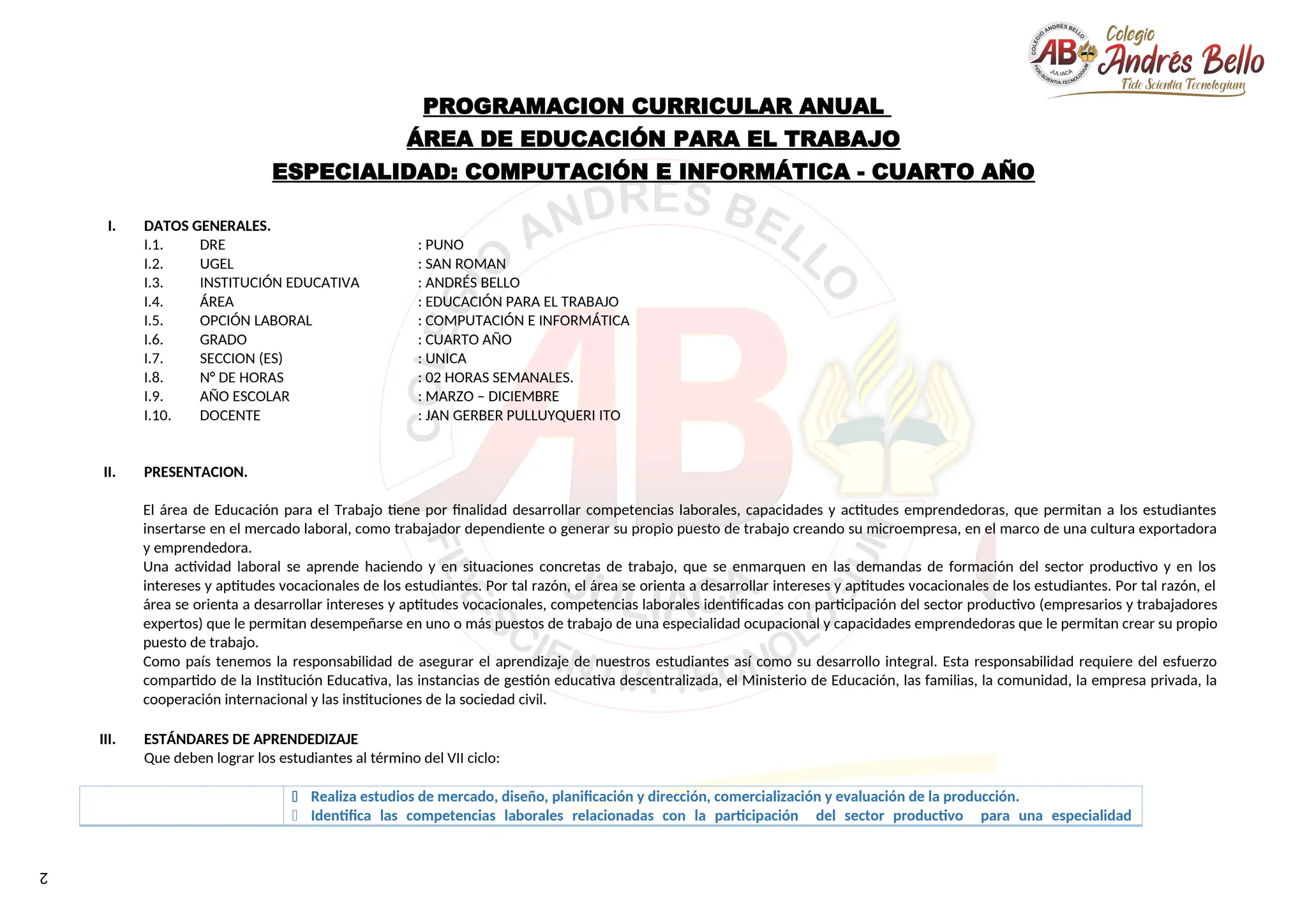 I.3. INSTITUCIÓN EDUCATIVA : ANDRÉS BELLO