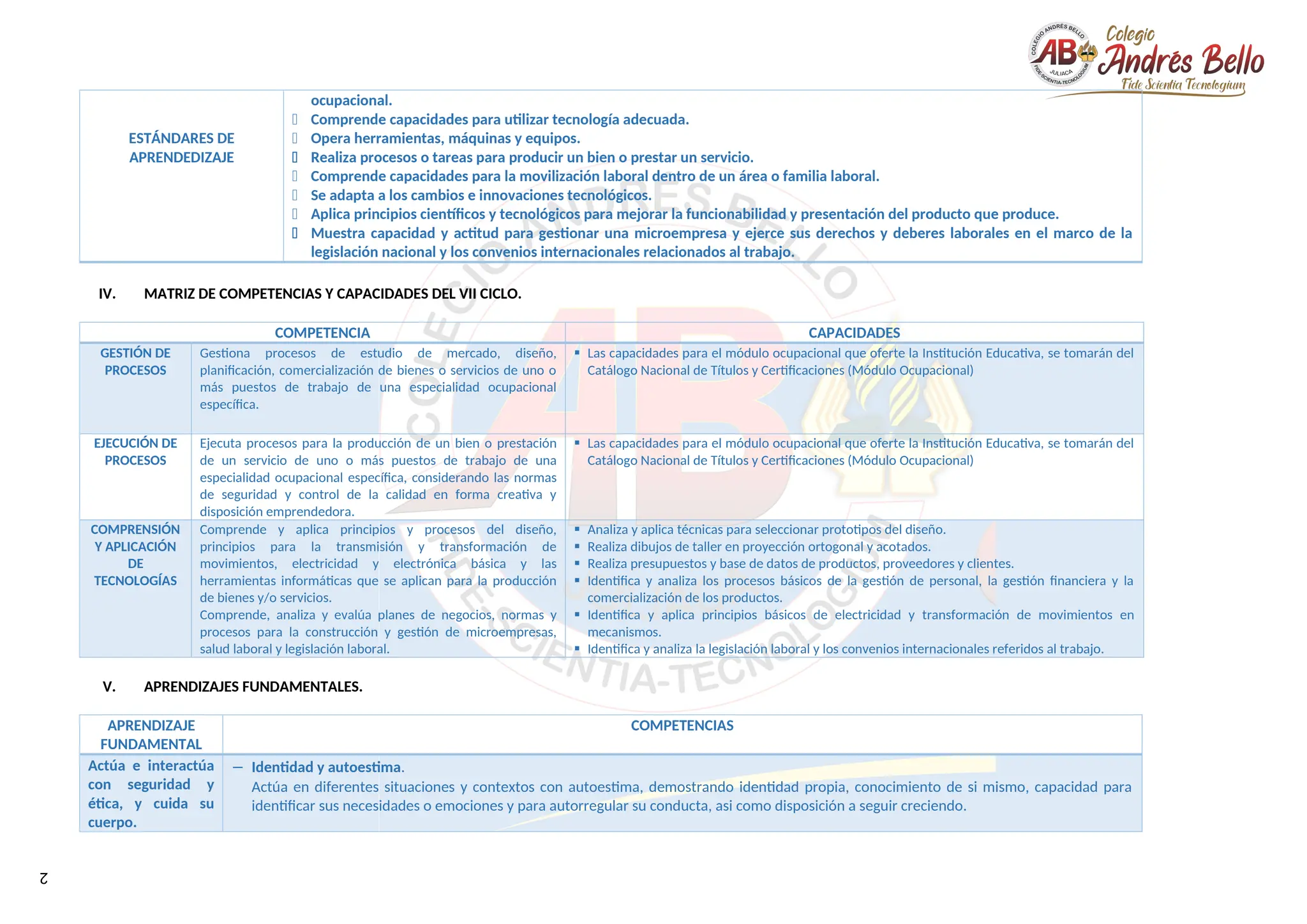 IV. MATRIZ DE COMPETENCIAS Y CAPACIDADES DEL VII CICLO.