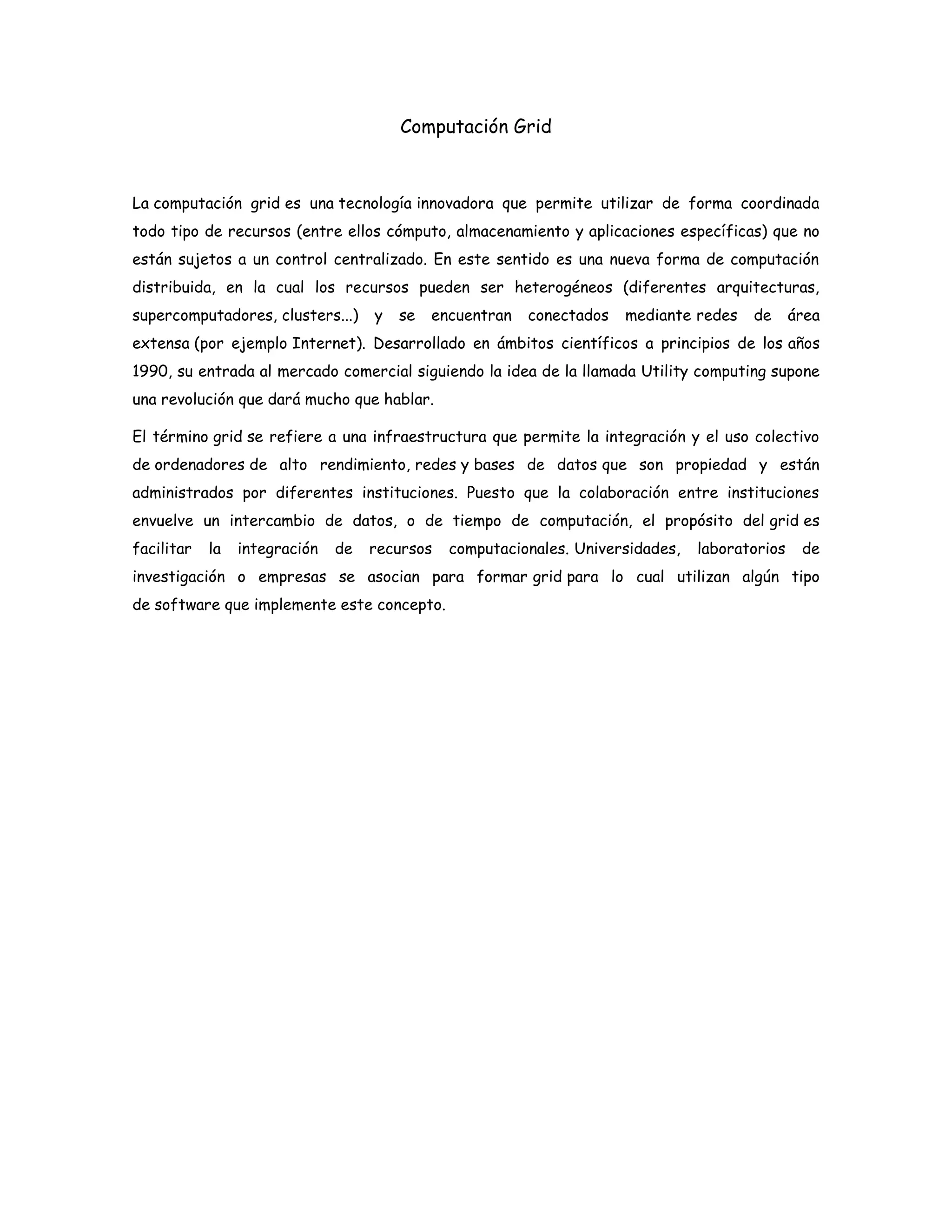 La computación grid permite utilizar de forma coordinada recursos como cómputo, almacenamiento y aplicaciones que no están sujetos a un control centralizado, a través de redes de área extensa como Internet. Se desarrolló inicialmente en ámbitos científicos y su entrada al mercado comercial supone una revolución. Permite la integración y uso colectivo de recursos computacionales propiedad de diferentes instituciones.