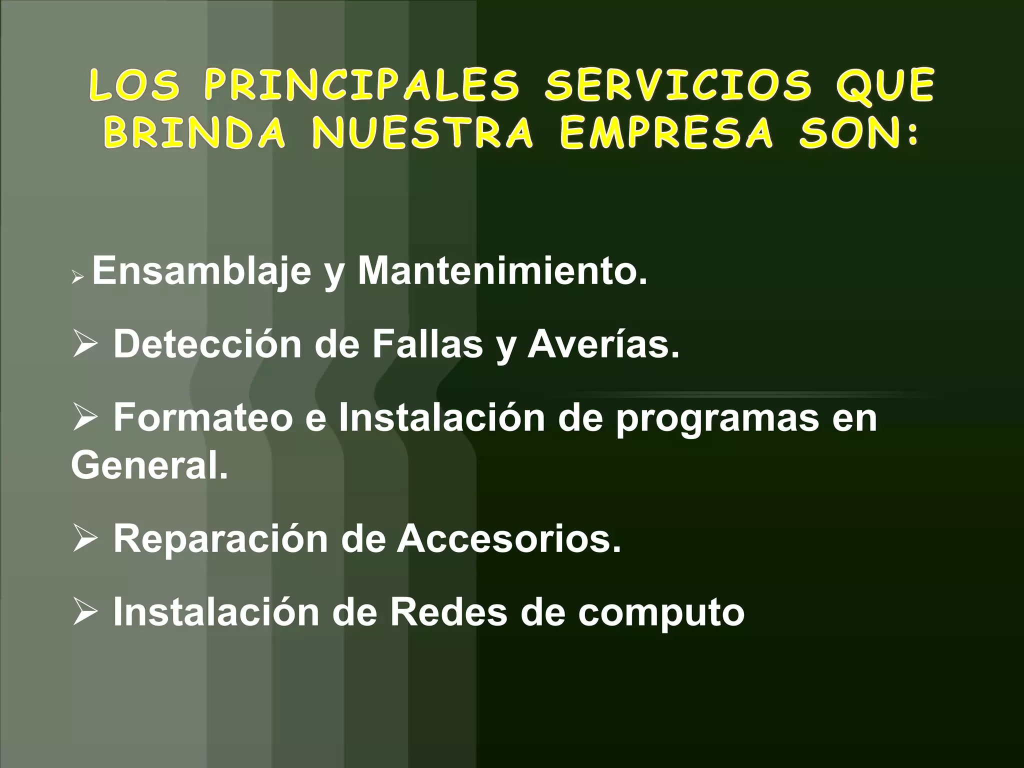 Computer Service es una empresa peruana dedicada a la reparación y venta de equipos de cómputo. Fue fundada en 2010 y ofrece servicios como ensamblaje, detección de fallas, formateo e instalación de programas, reparación de accesorios e instalación de redes. La empresa busca expandirse a nivel nacional brindando soluciones informáticas y hardware y software originales de marcas reconocidas.