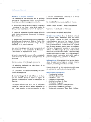 El departamento de Piura, Perú, cuenta con numerosos atractivos turísticos históricos, culturales y naturales, incluyendo vestigios de la antigua cultura Tallán, la Casa Museo Miguel Grau, la Catedral de Piura, playas como Máncora y Cabo Blanco, el desierto de Sechura, las ruinas de Aypate e importantes centros artesanales como Catacaos. La gastronomía de Piura también es destacada, con platos como el seco de cabrito, el cebiche y postres como el ch