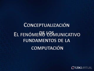 El documento habla sobre los fundamentos de la comunicación. Define la comunicación como la transmisión de información de una entidad a otra a través de signos compartidos. Los elementos clave de la comunicación son el emisor, que codifica y transmite el mensaje; el mensaje o fuente de información; el medio por el cual viaja el mensaje; y el receptor, que recibe y decodifica el mensaje. La comunicación requiere de todos estos componentes para transmitir información de un lado a otro.