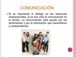 Este documento ofrece consejos sobre cómo mejorar la comunicación con hijos adolescentes. Recomienda mantener líneas de comunicación abiertas, dar mensajes claros y positivos, escuchar activamente, establecer bases y principios de comportamiento, y crear un clima de confianza donde los adolescentes se sientan cómodos hablando de todo. La comunicación efectiva durante la adolescencia es crucial debido a los grandes cambios físicos, emocionales y psicológicos que ocurren durante esta etapa.