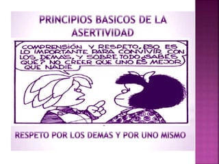 El documento discute la importancia de comprendernos a nosotros mismos y a los demás, y describe tres estilos de comunicación: pasivo, agresivo y asertivo. La comunicación asertiva involucra expresar abiertamente nuestros sentimientos y opiniones de una manera respetuosa que no ofenda a los demás.