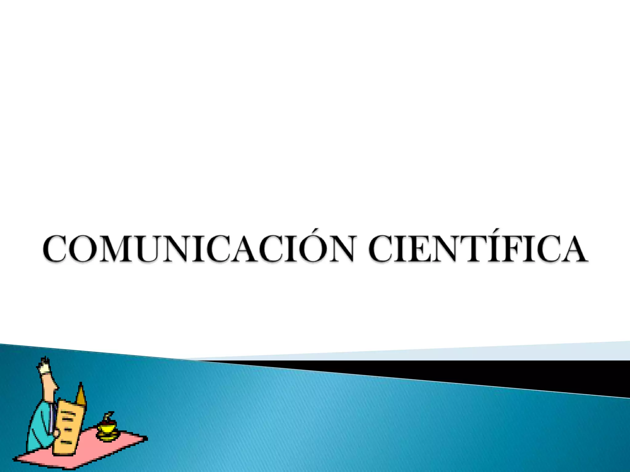 La comunicación científica implica transmitir conocimientos científicos de manera organizada y accesible a la sociedad. Es fundamental para la ciencia compartir sus descubrimientos, y se logra a través de canales formales e informales siguiendo principios como la divulgación lógica y comprensible de los avances. La generación de conocimiento científico requiere objetivar la información en documentos que se comunican de los investigadores a receptores como lectores o auditorios.