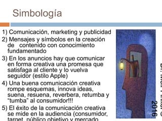 El documento presenta 30 reglas sobre comunicación creativa. Aborda temas como estrategia, creatividad, pensamiento, conceptualización, psicología, publicidad y visualización. La comunicación creativa busca informar y persuadir al público objetivo a través de mensajes estratégicos que combinan elementos verbales, no verbales y técnicos. Se requiere pensamiento exploratorio e investigador para generar ideas creativas que transformen conceptos en experiencias significativas para los consumidores.