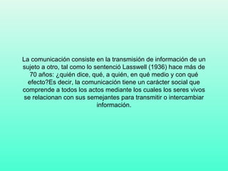 La comunicación ha evolucionado de un modelo unidireccional a uno bidireccional e interactivo debido a Internet y las tecnologías digitales. Los nuevos medios permiten que los receptores se conviertan en emisores y participen en redes globales, cambiando el paradigma comunicacional. La educación a distancia también se ha transformado gracias a estas herramientas, permitiendo la enseñanza flexible y autónoma separada físicamente del centro educativo.
