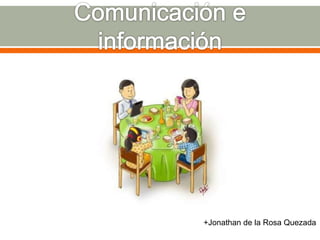 El documento describe la comunicación y la información. Explica que la comunicación es el intercambio de información entre seres vivos y que requiere que el receptor decodifique y comprenda el mensaje. También define la información como datos que transmiten un mensaje y permiten conocer algo. Luego distingue entre los diferentes tipos, niveles y formas de comunicación e información.