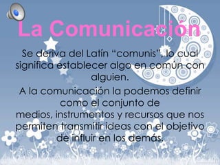 Este documento presenta información sobre la comunicación en 3 oraciones: