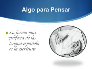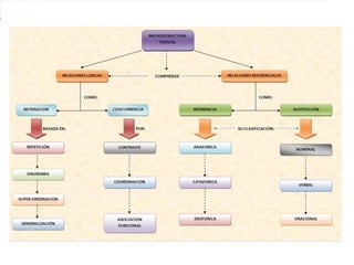 El documento describe las técnicas y estrategias de la escritura, incluyendo el proceso de escritura que consta de cuatro fases: el proyecto, la redacción, la revisión y la edición. También explica conceptos como la estructura textual, la coherencia, la cohesión y la intención comunicativa, así como las características de la comunicación escrita.