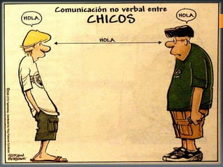 Este documento describe los diferentes elementos y características de la comunicación no verbal, incluyendo kinésica, proxémica, paraverbal e icónica. Explica que la kinésica se refiere al estudio de los movimientos corporales como la postura, gestos y expresión facial. La proxémica estudia el uso del espacio personal y social. El paraverbal se refiere a aspectos como el tono y volumen de la voz. La comunicación icónica incluye símbolos e íconos.