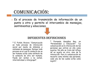 Este documento discute la comunicación y la expresión. Define la comunicación como el proceso de transmisión de información entre un emisor y receptor, e identifica elementos clave como el mensaje, canal y retroalimentación. Explora diferentes tipos de comunicación y expresión, así como las similitudes y diferencias entre los dos conceptos. Finalmente, analiza el papel de la comunicación gráfica y la expresión en los medios impresos.