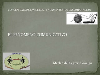 Este documento describe los fundamentos de la comunicación, incluyendo la definición de comunicación como el proceso de transmitir un mensaje de un emisor a un receptor a través de un canal. Explica los diferentes tipos de comunicación como oral, escrita, electrónica y por medios de comunicación masiva. También define los elementos clave de la comunicación como el mensaje, el emisor, el receptor, el código y el contexto.