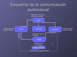 Este documento describe la comunicación audiovisual y los medios de comunicación social, con un enfoque en la radio. Explica los elementos clave de la comunicación como el emisor, receptor, mensaje, canal y código. Luego describe la historia de la radio, desde sus orígenes hasta el desarrollo de la radio transistorizada y digital. Finalmente, analiza cómo la radio en Internet está evolucionando y compitiendo con la televisión, y proporciona un ejemplo del popular programa de radio español "Del 40 al 1".