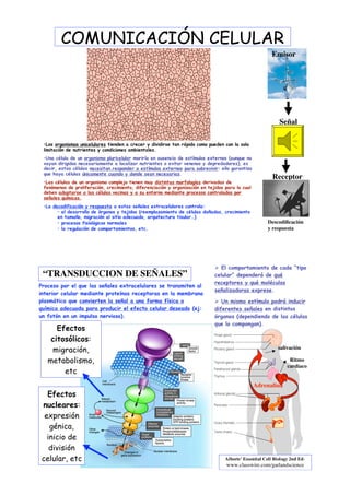 Las células de organismos pluricelulares necesitan estímulos externos para sobrevivir y multiplicarse. Estos estímulos se transmiten al interior celular a través de proteínas receptoras en la membrana, las cuales convierten la señal externa en una forma física o química que activa cascadas intracelulares de señalización. Algunos mediadores químicos pueden unirse a receptores intracelulares, los cuales se translocan al núcleo para regular la transcripción génica relacionada con pro