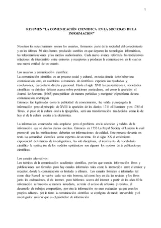 La comunicación científica es un proceso social y cultural importante para compartir conocimiento