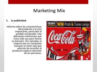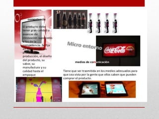 El documento describe la comunicación interna y externa de Coca-Cola. Detalla los procesos de comunicación interna de la empresa, incluyendo la creación de un diálogo abierto continuo con los empleados. También describe los esfuerzos de Coca-Cola en comunicación externa a través de la publicidad, patrocinios y promociones para dar a conocer sus productos y mejorar su imagen. Finalmente, el documento identifica algunas barreras comunes en la comunicación organizacional como la falta de planeación y la información deficiente.