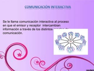 La comunicación interactiva implica el intercambio de información entre emisor y receptor a través de diferentes canales, mientras que la comunicación no interactiva solo implica la emisión de un mensaje sin interacción. Los géneros periodísticos se han adaptado al internet para llegar de manera más eficaz a audiencias globales a través de periódicos digitales, radio en línea, televisión en línea e infografías digitales.