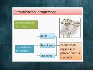 La comunicación, tanto oral como escrita, implica la creación de significados compartidos y se reduce a interacciones simbólicas. La comunicación interpersonal es un intercambio recíproco que surge naturalmente y se caracteriza por su flexibilidad y singularidad, mientras que la intrapersonal se centra en el diálogo interno que nos ayuda a conocernos mejor. Dominar estas formas de comunicación es esencial para un desempeño efectivo en profesiones como la medicina.