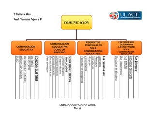 El documento describe los elementos clave de la comunicación educativa. Coincide con la definición general de comunicación en que implica un emisor, receptor, canal y medio, pero además involucra contenidos educativos, soportes didácticos, procesos de codificación y decodificación, y retroalimentación. Los requisitos funcionales de la comunicación educativa son ser motivadora, persuasiva, estructurante, adaptativa y facilitadora de la comprensión. Cuatro factores determinan su efectividad: las habilidades, actitudes, conocimientos y