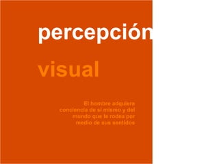 El documento describe las leyes de la teoría de Gestalt sobre la percepción visual. Explica que el todo es más que la suma de las partes y presenta 20 principios o leyes de la teoría, como la ley de totalidad, la ley estructural, la ley de contraste, la ley de cierre, la ley de simplicidad, la ley de continuidad y la ley de proximidad.