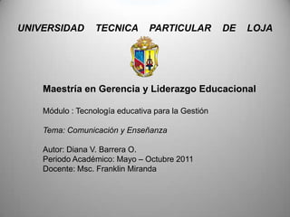 El documento describe los diferentes tipos de comunicación y enseñanza basados en la relación espacio-temporal entre el emisor y el receptor. Identifica cuatro situaciones: mismo tiempo-mismo lugar; mismo tiempo-lugar diferente; tiempo diferente-mismo lugar; y tiempo diferente-lugar diferente. Para cada situación, provee un ejemplo de cómo podría ocurrir el proceso de enseñanza-aprendizaje.