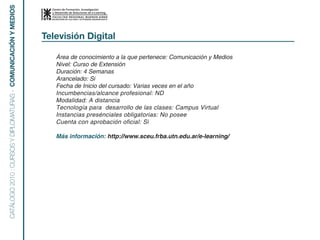 Este curso de extensión de 4 semanas sobre Televisión Digital cubre los conceptos clave relacionados con la transición a la televisión digital, incluyendo estándares, arquitecturas de red, tecnologías como IPTV, televisión por cable, y televisión digital terrestre. El curso explora los modelos de negocio emergentes y los nuevos servicios interactivos y multimedia que son posibles con la convergencia de la televisión y las comunicaciones digitales.
