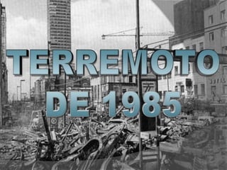 El documento habla sobre el terremoto de 1985 en la Ciudad de México. El terremoto tuvo una magnitud de 8.1 grados en la escala de Richter y causó aproximadamente 20,000 muertes. El documento enfatiza la importancia de desalojar los edificios de manera segura durante un terremoto para evitar lesiones o muertes, ya que pueden ocurrir réplicas incluso un día después del sismo inicial.