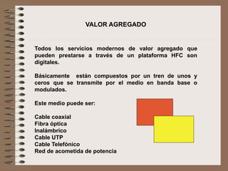 El documento describe los fundamentos de las comunicaciones digitales y las redes de computadoras. Explica que los servicios de valor agregado se transmiten como trenes de unos y ceros a través de diferentes medios como cable coaxial, fibra óptica o cableado. También describe los tipos de redes como LAN y WAN, y el modelo OSI de 7 capas para la comunicación de datos a través de cualquier medio.