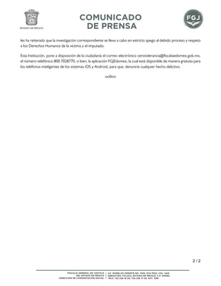 La Fiscalía del Estado de México ha vinculado a proceso a Leonel Antonio 'n', alias 'cochiloco', por su posible implicación en el homicidio de J.R.G.G. ocurrido en diciembre de 2022 en Tepotzotlán, además de ser señalado como generador de violencia. El tribunal ha ordenado prisión preventiva y ha fijado un plazo de dos meses para el cierre de la investigación complementaria. A raíz de su detención, se han llevado a cabo protestas exiguiendo su liberación, aunque la fiscalía asegura que la investigación se realiza bajo el debido proceso y respetando los derechos humanos.