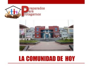 El documento describe los aspectos positivos y negativos de la comunidad actual, así como formas en que puede mejorar. Entre los aspectos positivos se encuentran capacitaciones y simulacros de sismos organizados por el alcalde, así como donaciones de alarmas y mochilas de emergencia. Algunos riesgos son casas antiguas de adobe y zonas comerciales que obstaculizan el acceso. Para mejorar, se sugiere mejorar la señalización de parques y cambiar actitudes indiferentes. El proyecto es importante para educar a