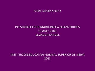 La comunidad sorda constituye una minoría lingüística y sociocultural definida por el uso de la lengua de signos. Las personas sordas no son mudas y tienen la misma capacidad intelectual que las personas oyentes. La escuela normal superior ofrece educación para niños, adolescentes y adultos sordos y cuenta con maestros e intérpretes capacitados.