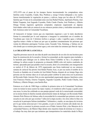 La comunidad de Yacubiana se formó en la década de 1970 a partir de la venta de tierras de la hacienda Santa Rosa de Moya. Los primeros pobladores eran familias indígenas de las parroquias vecinas. En 1979 se inauguró oficialmente la comunidad y se creó la primera escuela, gracias a las donaciones de terreno por parte de los antiguos propietarios de la hacienda. La escuela ha sido ampliada y mejorada con el apoyo de organizaciones. Los habitantes de Yacubiana se dedican principalmente a la