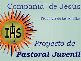 Este documento presenta un proyecto de pastoral juvenil de la Compañía de Jesús en la Provincia de las Antillas. El proyecto busca crear comunidades de fe y vida para jóvenes que se centren en Jesús y promuevan el encuentro, la formación, el compartir experiencias y caminar juntos. El proyecto también quiere garantizar la continuidad en la formación de la persona desde la niñez hasta la juventud a través de diversas etapas y ampliar el alcance al mundo universitario.