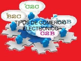 Este documento describe los diferentes tipos de comercio electrónico, incluyendo B2B (negocio a negocio), B2C (negocio a consumidor), B2A (negocio a administración), B2E (negocio a empleado), C2C (consumidor a consumidor), C2G (consumidor a gobierno) y B2G (negocio a gobierno). Cada tipo tiene sus propias ventajas como ampliar mercados, ahorrar tiempo y costos, y facilitar las transacciones entre diferentes actores.