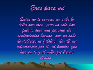 Una persona expresa su amor por otra, diciendo que no quiere separarse de su "amorcito" y que lo admira no solo por su apariencia física, sino también por la buena persona que es sin dobleces ni falsedades. La persona declara que ellos dos estarán juntos para siempre.