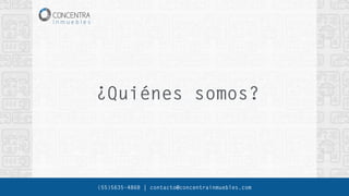 Concentra Inmuebles es un grupo de desarrolladores inmobiliarios en la Ciudad de México, especializado en reciclaje sustentable y con más de 25 años de experiencia. Han construido 925 viviendas valoradas en más de 951.5 millones de pesos, ofreciendo proyectos que equilibran ubicación, diseño y funcionalidad, así como servicios inmobiliarios integrales. Sus desarrollos son reconocidos por su sostenibilidad y seguridad estructural, generando ahorros en electricidad, agua y gas.