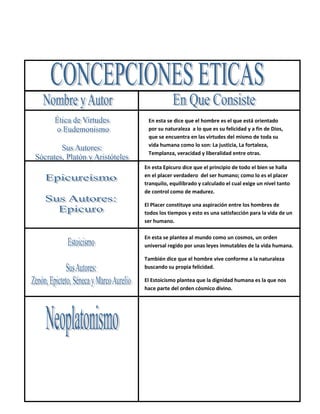 Este documento discute diferentes filosofías sobre lo que constituye la felicidad humana, incluyendo las virtudes, el placer moderado, la búsqueda natural del placer y la dignidad que viene de formar parte del orden cósmico.
